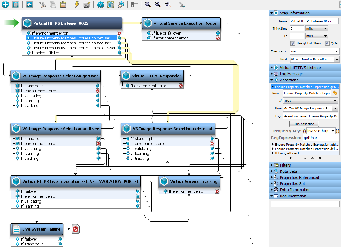 . Then add assertions in first two VS Image response selection steps to check the "NoMatch=true" is returned or not (screenshot 3). If it is true, then goto the next VSI. When a transaction hit the VS, it first looks in VSI_1.vsi. If no specific match is found then assertion it will return "NoMatch=true" and assertion will be evaluated and goto second VSI, which is VSI_2. If no specific match is found then it will goto third VSI, which is VSI_3. If it finds a specific or META then the response is returned. If nothing is found then a No Match is returned.