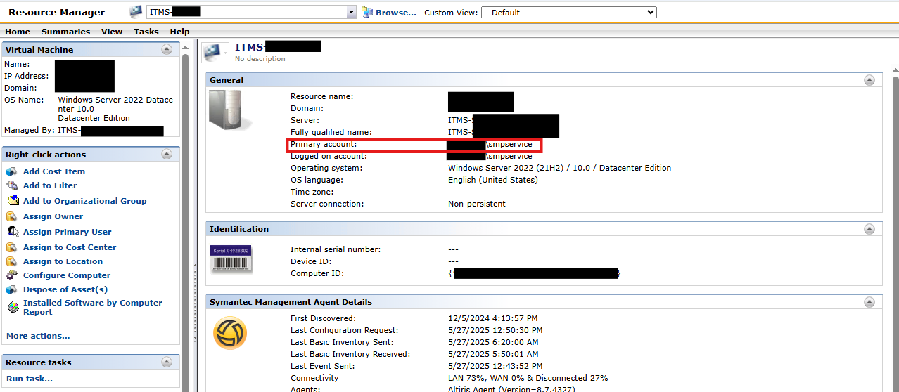 When running the CMDB task "Assign Computer's Ownership to be the Primary User", this fails to work or assign the Asset Owner correctly to a computer resource.