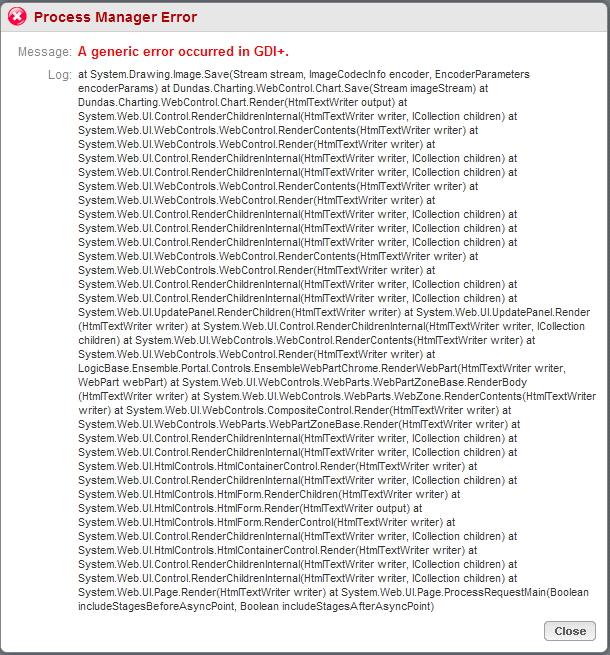 Open IIS, find the ProcessManager Application Website, and reset it's application pool to the previously configured app pool. Please note that the ProcessManager, SymWebInclude, and SymWorkflowPages web applications/pages must all be in the same application pool.