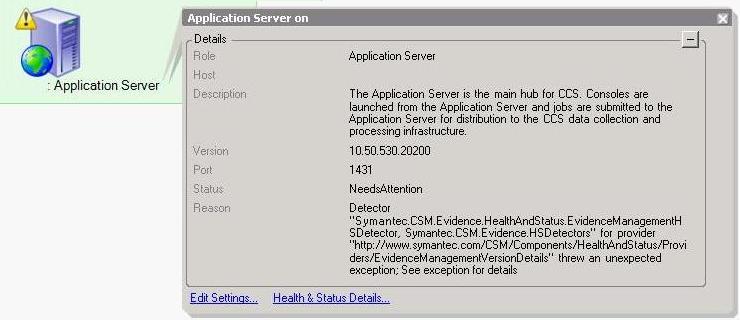 Alert Message: “Symantec.CSM.Evidence.HealthAndStatus.Evidence ManagmentHSDetector, Symantec.CSM.Evidence.HSDetectors” for provider threw an unexpected exception.