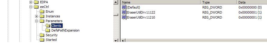 {HKLM\System\CurrentControlSet\Services\eeCtrl\Parameters\Clients}