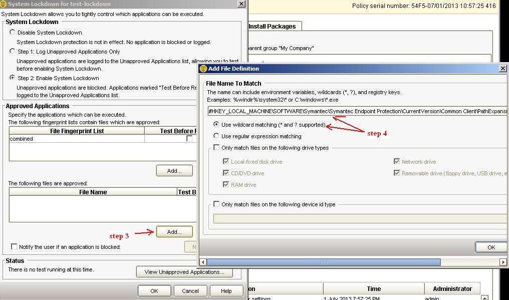 This is not a product issue. New definitions contain new executable binary files whose fingerprints are not in the approved files' fingerprint list, so system lockdown blocks these new binaries when they are being loaded. Take the block message from the Windows 7 x64 system above for example, ccSvcHst.exe process (which is the Symantec Endpoint Protection service process) was blocked from loading a dll file IPSFFPl.dll in the new IPS definitions.