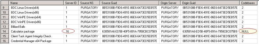 As per the following graphic you may notice packages where the server is the same as all of the others (or another server’s name is displayed). Usually, if the “Codebases” column is NULL then the [Server ID] value will be different than those where the “Codebases” column has a numeric value.