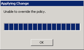 In Symantec Critical System Protection (SCSP) and Symantec Data Center Security Server (SDCS), an "Unable to Override the Policy" error is incurred when attempting to override a policy. Then, up to several minutes later, a notification appears in the system tray saying that "Prevention has been disabled". Up to several minutes after that, a system tray message appears that states "Prevention has been enabled" without any user action.