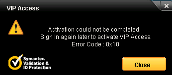 Connectivity to the VIP credential activation URL is not accessible from the machine.
