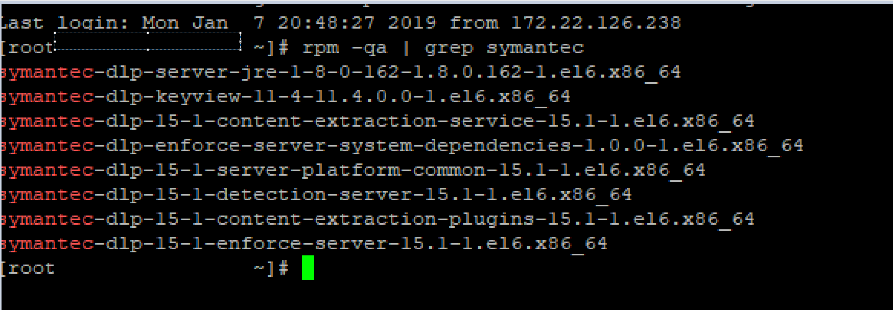 - "rpm -ev symantec-dlp-server-jre-1-8-0-162-1.8.0.162-1.el6.x86_64" or