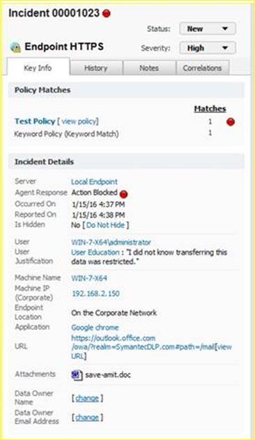 Testing on outlook.com with Symantec Data Loss Prevention Endpoint Agent, sensitive content produced a match in the body and/or the attached file of an email being generated and sent on the site. Testing produced successful notification and blocking in the three common browsers, IE, Chrome and Firefox, on a Windows workstation operating system.