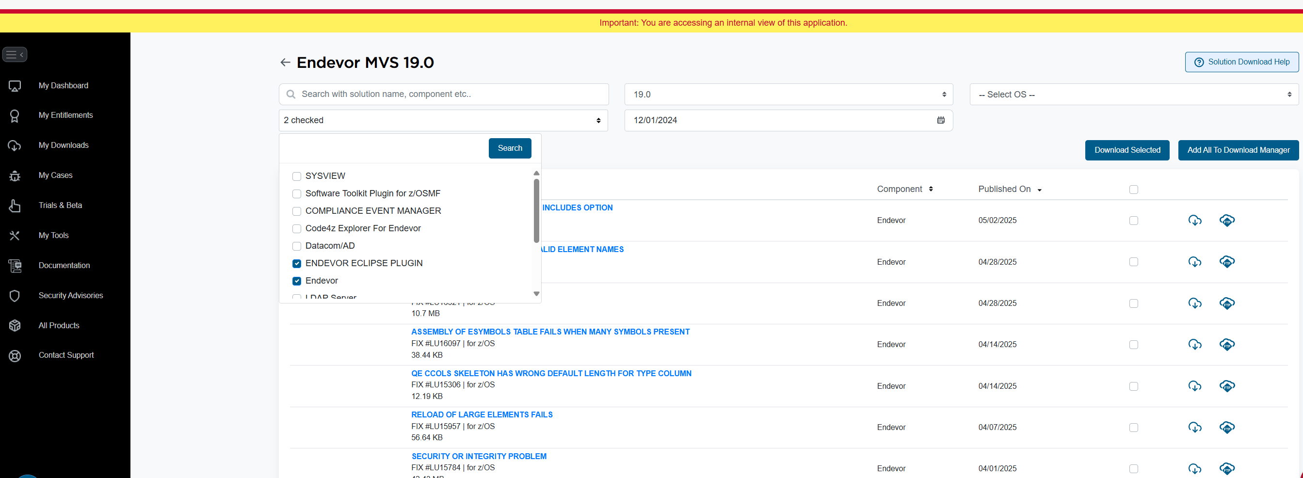 From the downloads page type the word ENDEVOR in the Search box then click on Endevor.