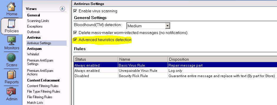 It is highly recommended to set this rule to “Quarantine” so that any legitimate documents caught by this rule can be released to the end user if necessary, but the malicious content contained in these file types is not allowed through to the end user.