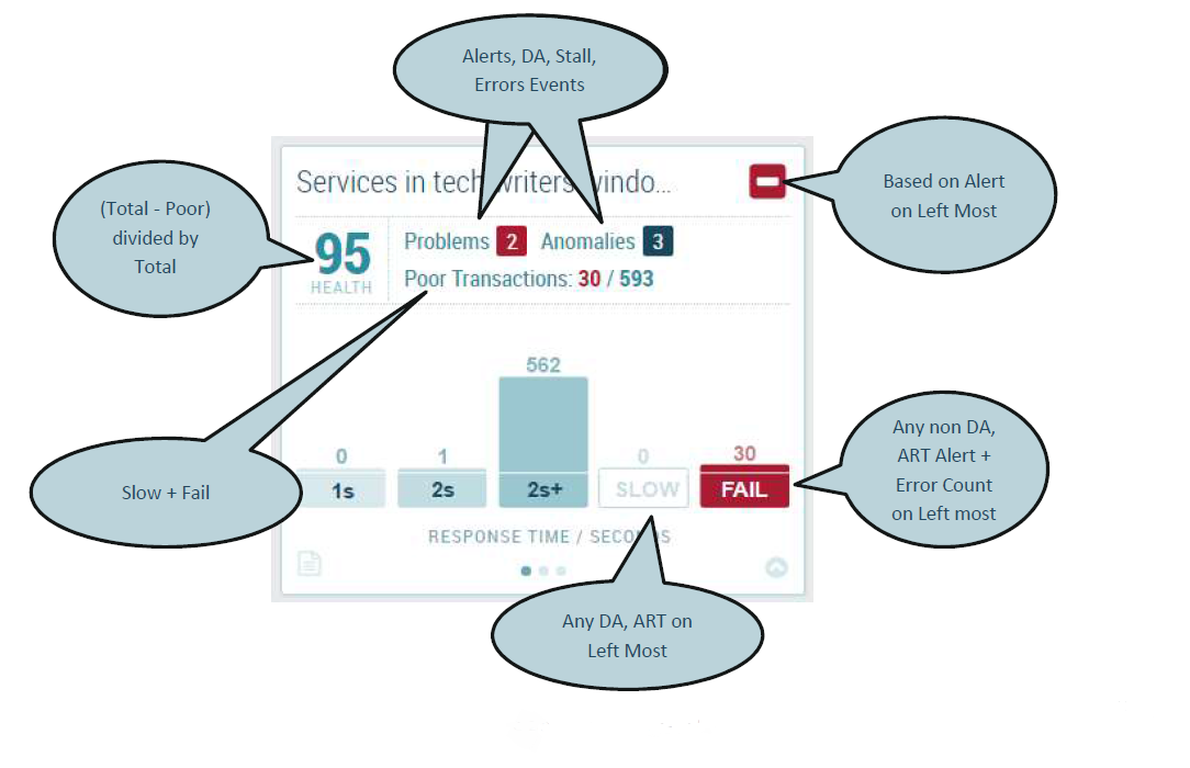 4. Slow Bucket - Based on any alert from Differential Analysis or Average Response Time on the left most component. If Differential Analysis is not configured, then it will be all based on Average Response Time. If you have an alert set on DA or ART and it goes into caution/danger, then it will be put into the slow bucket.
