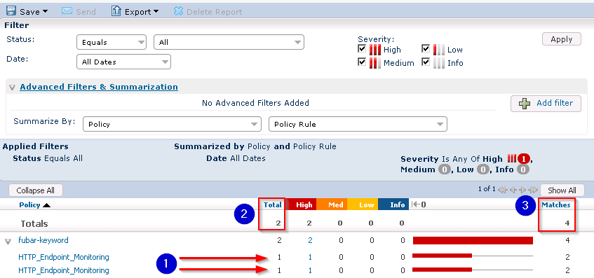 Reports summarized by policy and policy rules will show incorrect match counts within the Incident Report.