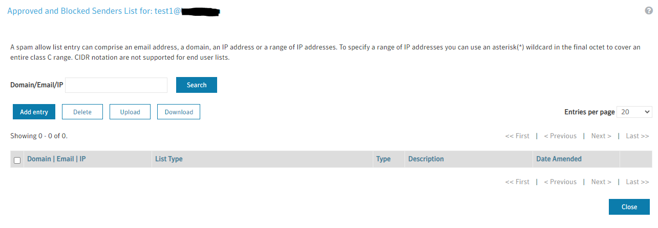 The Email Quarantine Administrator can no longer manage the user's Allowed and Blocked senders list through the Email Quarantine Portal. The list is now managed through the ClientNet portal.