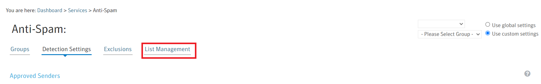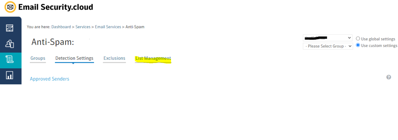 1. Dashboard > Services> Email Services > Anti-Spam