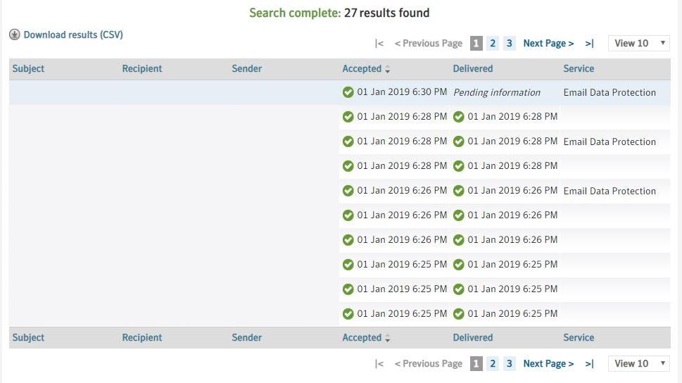 Accepted: This column shows the date and time when the email was successfully delivered to the Email Security.cloud servers from the sender's email server.