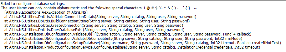 The username or password doesn't contain any other different special character from the valid list mentioned above in the error message.