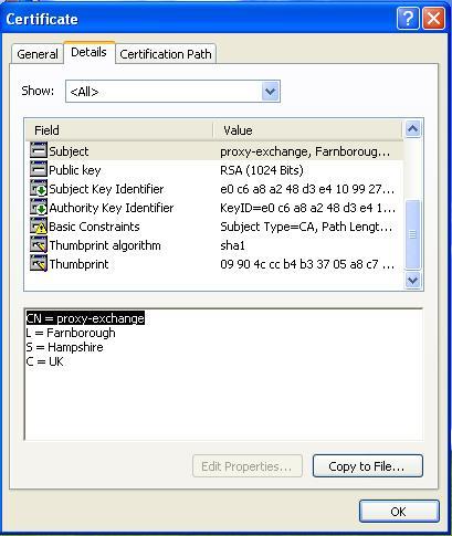 4) The https:// URL in the "Exchange Proxy Settings" must match the CN of the keyring being used on the ProxySG for SSL termination, For example I am using 'proxy-exchange':