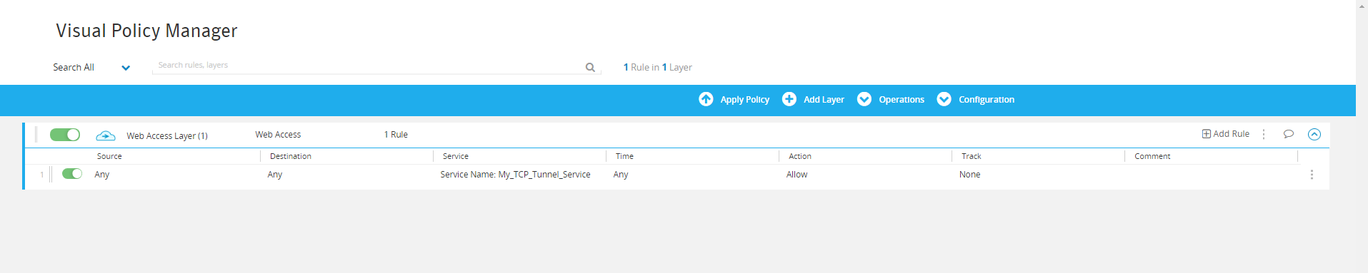Now go to the Visual Policy Manager and create a rule in Web Access Layer to allow users to access the service.