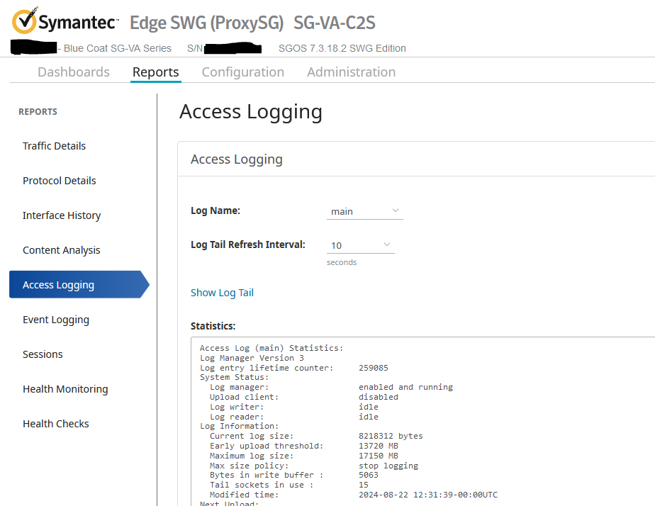 - Using Advance URL https://x.x.x.x:8082/accesslog/tail-f/main , replace x.x.x.x with Proxy IP Address.