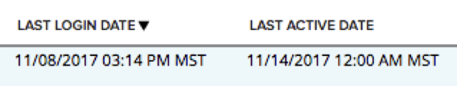 Alternatively, if a user has SSO set up, the Last Login Date could show a failed SSO login attempt as an actual login and record the date and time. However, the Last Active Date would not be updated.