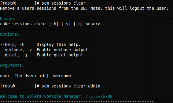 # scm sessions summary # scm sessions clear <username_or_id>