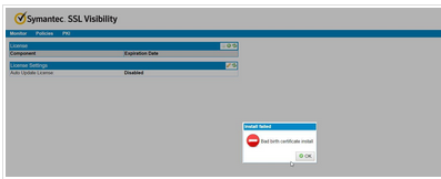 The "Bad birth certificate install" displays after uploading the newly generated license upon upgrading SSL Visibility appliance software to version 4.x: