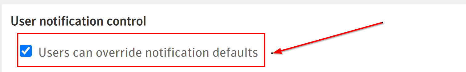 - Check the Users can override notification defaults checkbox to provide access to modify the notification settings in the quarantine portal for users.