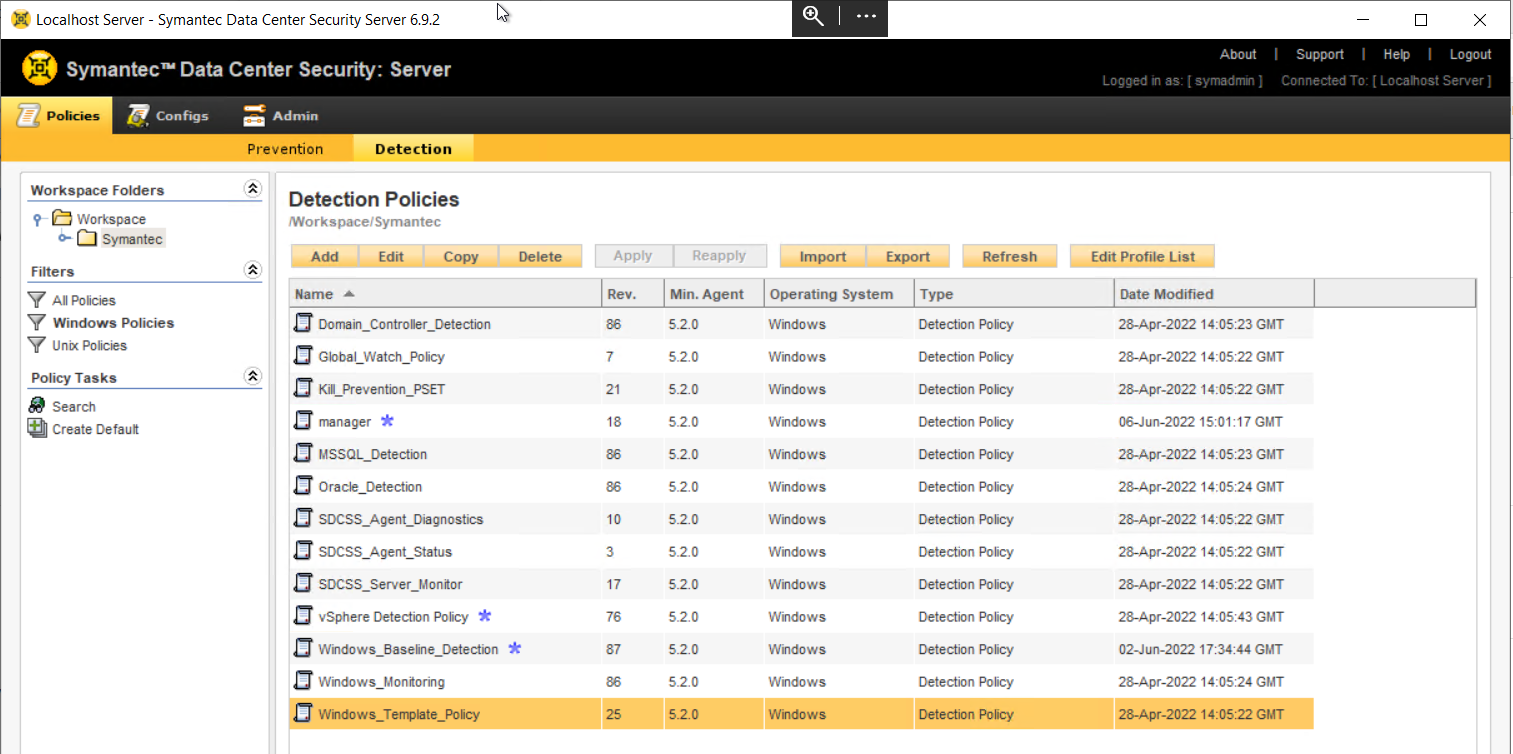 On the Policies page, double-click Windows_Template_Policy or UNIX_Template_Policy.