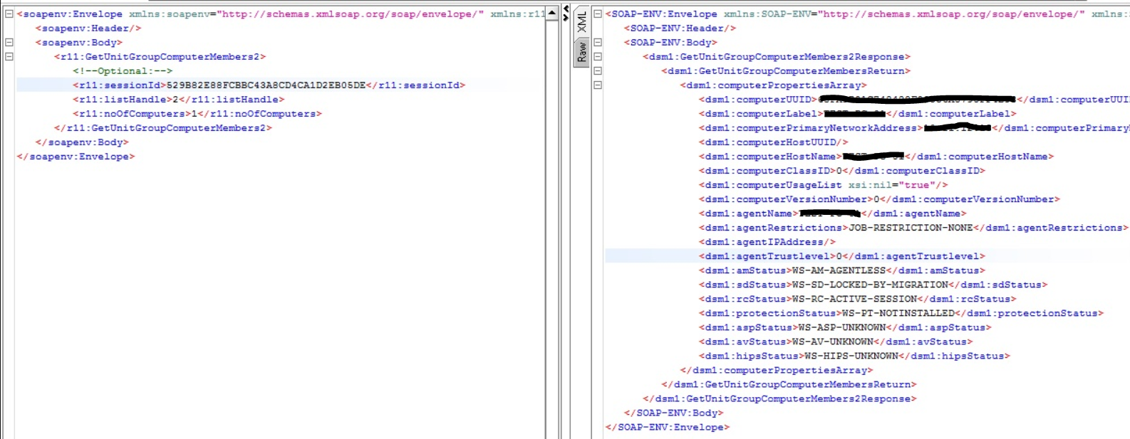 The result of this call should give you 2 results, 'OpenListHandle' and 'totalNoOfComputers'. The first is a mandatory field which will be used on the last call, and the second means how many Agents were found with the search made. If the result of this is "0", means that the filter made didn't find any Agent and must be done again changing the way the Agent is being searched.