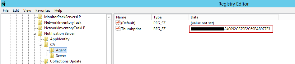 HKEY_LOCAL_MACHINE\SOFTWARE\Altiris\eXpress\Notification Server\CA\Agent\Thumbprint