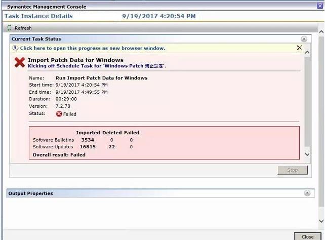 **CEDUrlStart** :http://entced.symantec.com/entt?product=SMP&version=7.6.1383.0&language=zh&module=zow7fEjcoxoyx+7hI5rpZtn45Md2uqcNkvrUs21jc7n9QlPjuQP2iDtlGOto+Z4kOdMAVck2Y0Y6W06iPik9Nw==&error=698926763&build=**CEDUrlEnd**","Altiris.PatchManagement.Tasks.WindowsImportTask.DownloadPackageFiles","AtrsHost.exe","314","Errors"