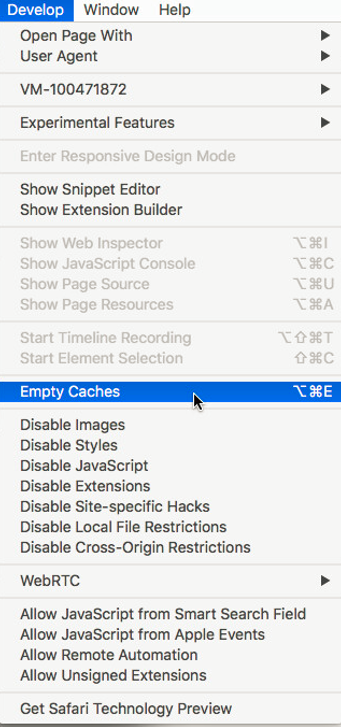 4. Clear the cache on Safari by selecting Develop> Empty Caches.