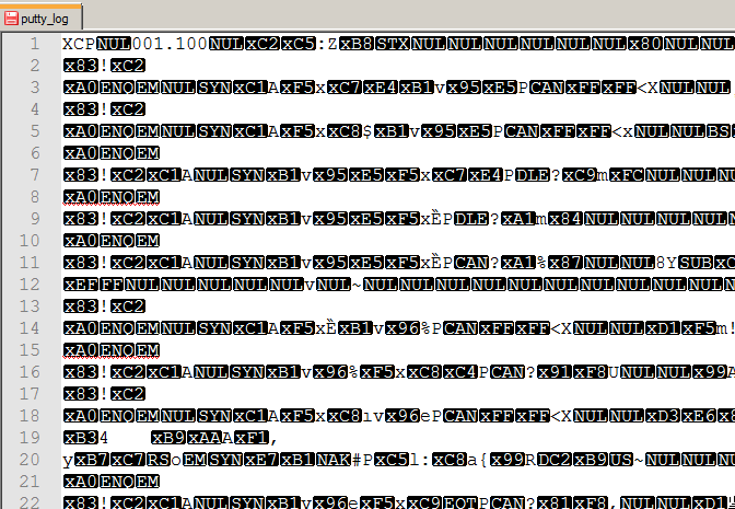 Once the other lines are removed, we need to remove the "--More--" that the proxy outputted during the logging. Replace (Ctrl+H) all instances of "--More-- " with "". That is, delete all instances of --More-- followed by 8 spaces.