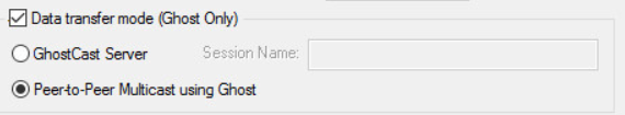 To resolve this issue you must first edit your existing deploy image task. Disable the Data transfer mode (Ghost Only) option and save the task. Then edit the task again and enable the Data transfer mode (Ghost Only) option. Choose the radial button for Peer-to-Peer Multicast using Ghost.