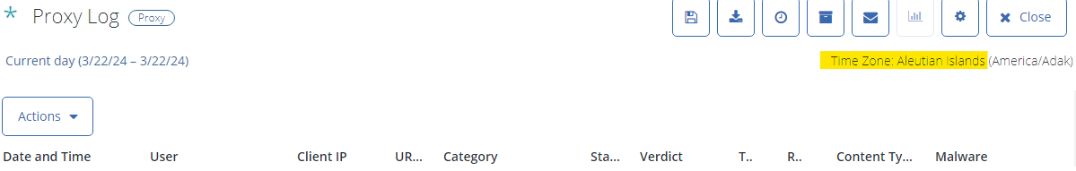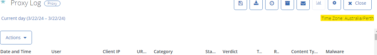 As in the below example, Cloud SWG portal shows "Australia/Perth" time zone: