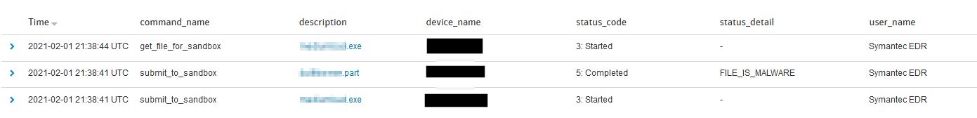 After enabling 'Automatic Submission' on the Global settings page on the SEDR Appliance, the Audit log for 'submit_to_sandbox' shows few submitted by user_name 'Symantec EDR'.