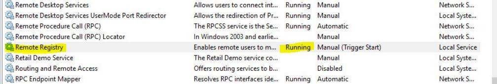 To resolve this issue, the Remote Registry service must be enabled and running. Bring up the Services on the client machine and locate the Remote Registry service. This service is normally disabled by default. Enable it and start this service. It will now be possible to authenticate to the remote machine and push the 32-bit console. This service can be disabled after the remote console push is complete.