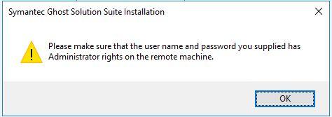 While trying to push the 32-bit remote console from the Ghost Solution Suite server to another machine you receive a message asking you to confirm your account and password have administrator rights on the remote machine.