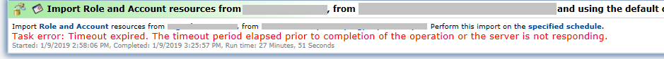 "Task error: Timeout expired. The timeout period elapsed prior to completion of the operation or the server is not responding"