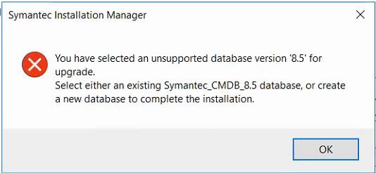 210323 "Unable to re-attach database to a SMP 8.5 RU4 server: You have selected an unsupported database version"