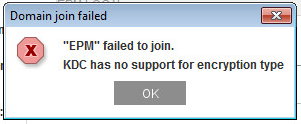 Domain join failed:
