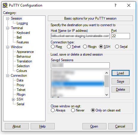 - Private Key File for Authentication - path to a PPK (Key in Puttygen format) leading to the SSH Key downloaded from the Luminate User Portal, converted by puttygen