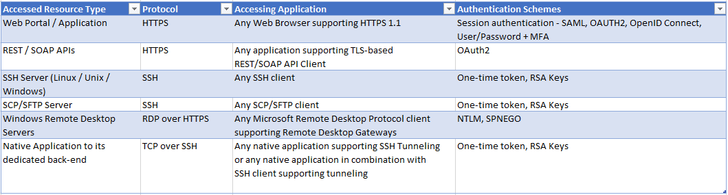 The secure connectivity is delivered using the standard applications, such as (but not limited to) Web Browsers, SSH Clients, RDP Clients, as well as dedicated applications for accessing Databases, Data warehouses and other special repositories.