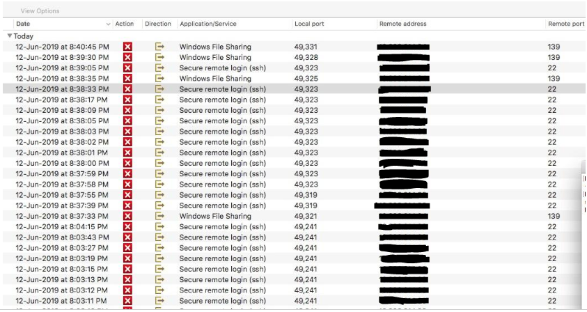 2019-05-28 14:22:06.525 KST DEBUG smc.SEPFWEventHandler [2019-May-28 14:22:06.525848] [DEBUG]SEPFirewallEventHandler::handlePacketFirewallEvent sending traffic log ( Rule Name: 다른 모든 IP 트래픽 차단, 기록, Protocol: TCP, Direction: Outgoing, LocalIPFamily: AF_INET, LoacalIP: xxx.xxx.xxx.xxx, LocalIPv6: xxx.xxx.xxx.xxx, LocalPort: 49279, RemoteIPFamily: AF_INET, RemoteIP: xxx.xxx.xxx.xxx, RemoteIPv6: xxx.xxx.xxx.xxx, RemotePort: 10443, Action: Block, EmailAlert: 0, Severity: 15, CurrLocation: 기본값, UserName: xxxx ,Domain:local).