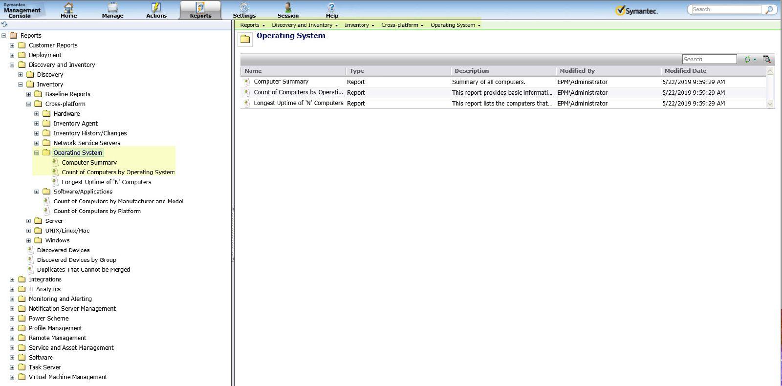 In the Symantec Management Console go to Reports>All Reports>Discovery and Inventory>Cross-Platform>Operating System.