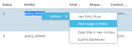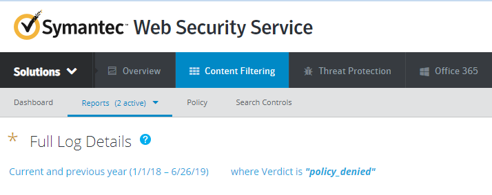 Reports in the Web Security Service (WSS) show that the verdicts are either policy_denied or content_filter_denied.