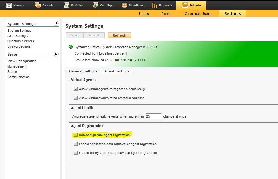 7. You can then reenable the "Detect duplicate agent registration" setting