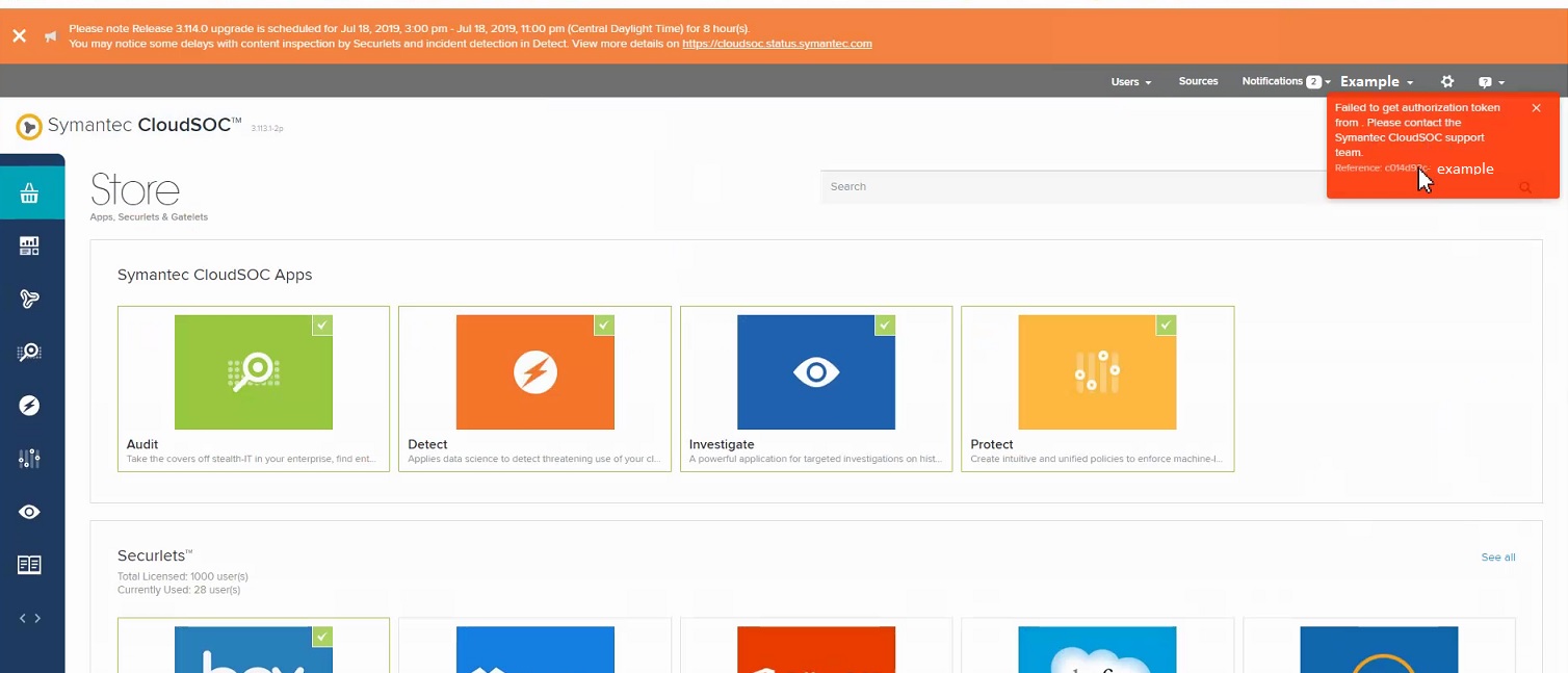 Failed to get authorization token from . Please contact the Symantec CloudSOC support team.