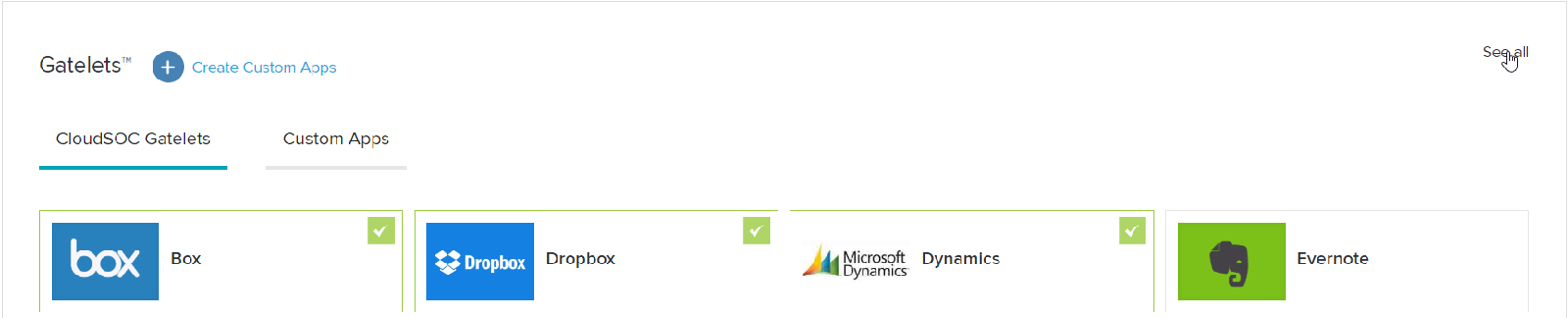After SysAdmin has logged in to CloudSOC there are two ways that you can find a Gatelet in the CloudSoc Store: