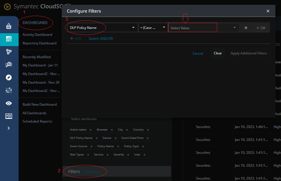 Risk Analytics is a new feature introduced in Cloudsoc on 3.167, it provides many ways to analyze the data, and run summary reports. It supports the use of DLP Policy Names, either as a filter or as a dimensional variable (raw or column).