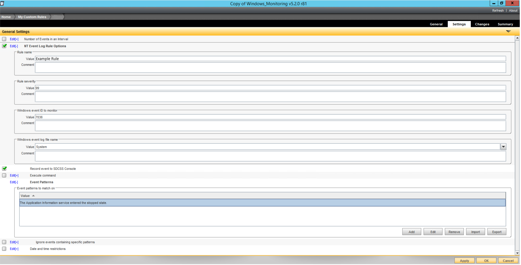 To achieve this, go to My Custom Rules -> Add a "NT Event" custom rule & edit it according the individual service monitoring requirement.